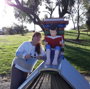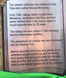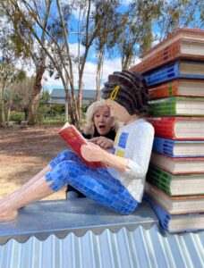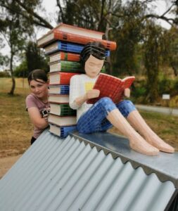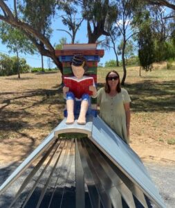 Two years ago, I had the honour and delight of unveiling this beautiful sculpture by artist Paul Leditschke on the Riesling Trail in my home town of Clare, South Australia. It depicts me as a 10-year-old, reading on the roof of my family home – the starting point for my lifelong love of books, as a reader and now a writer.